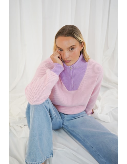 Twns Breckenridge Baby Pink/Lilac Long Sleeved Trucker Neck Pullover