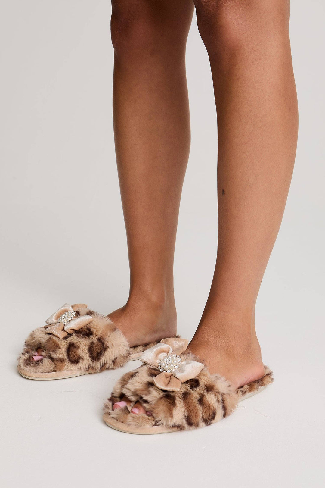 Anya Embellished Slider Slippers in Leopard Print: Leopard / L = UK 6-7 / EU 40-41 / US 8-9