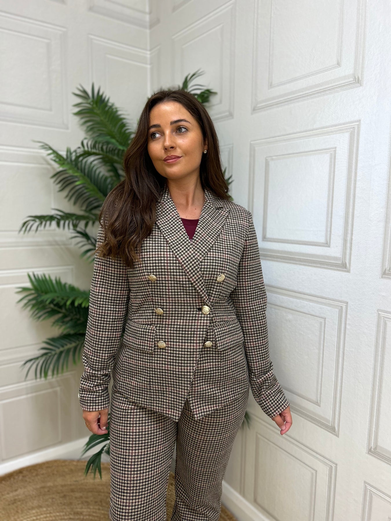 Enhance your professional wardrobe with the HV Society Fia Burgundy Blazer. This fitted, long sleeve tweed blazer exudes sophistication and elegance. Perfect for any business or formal occasion, the blazer is tailored to ensure a flattering fit. Elevate your style to new heights with this must-have piece.