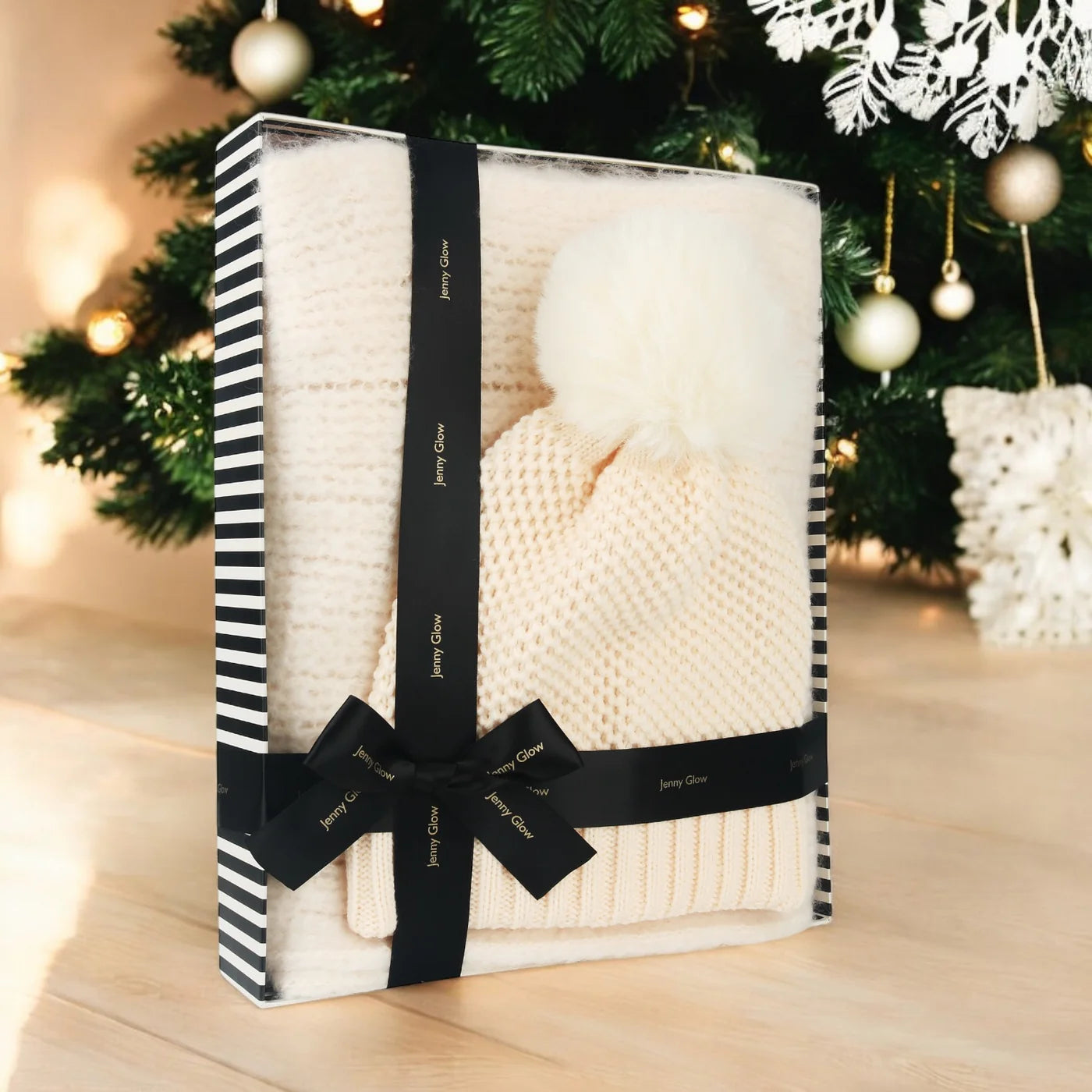 Elevate your winter wardrobe with the Jenny Glow Beige Scarf & Hat Set, thoughtfully gift boxed for a refined presentation. This elegant duo combines a cozy bobble hat and a luxuriously soft fuzzy scarf, delivering warmth and timeless style. Perfect for staying chic in cooler months or gifting to someone special, this set offers both comfort and sophistication in one beautifully coordinated package.