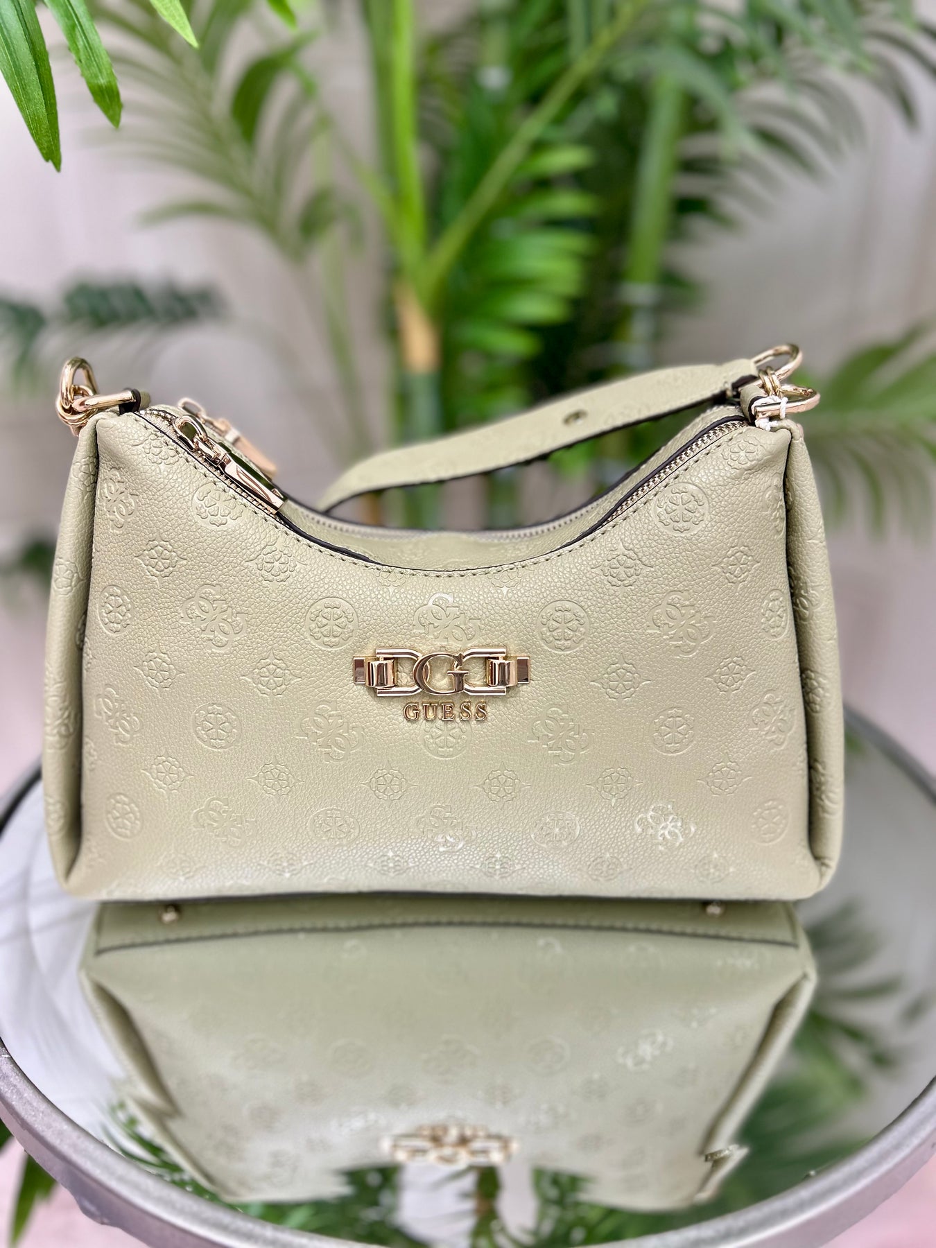 Guess Anise Sage Logo Zip Shoulder Bag