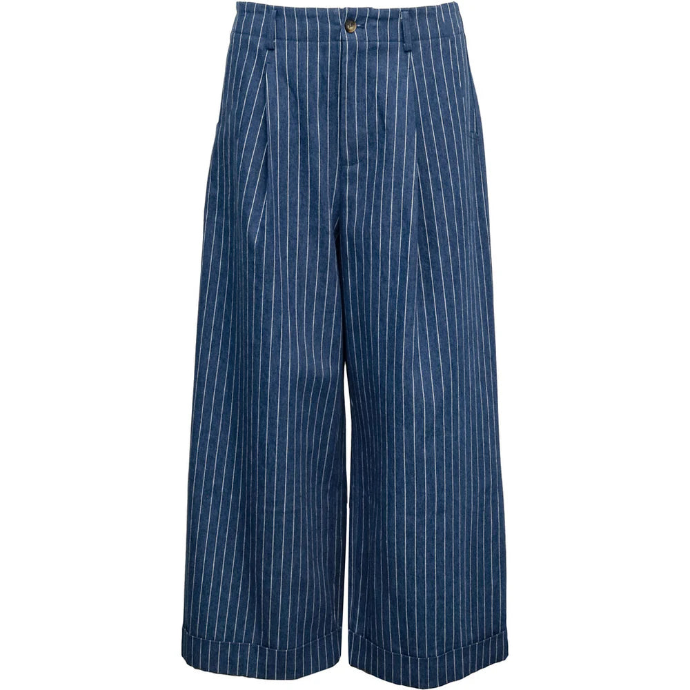 Striped trousers in a light and comfortable quality with wide legs and an elegant hem. Designed with a fixed waistband and discreet closure, giving a classic and timeless look. Perfect for both everyday and more formal looks.