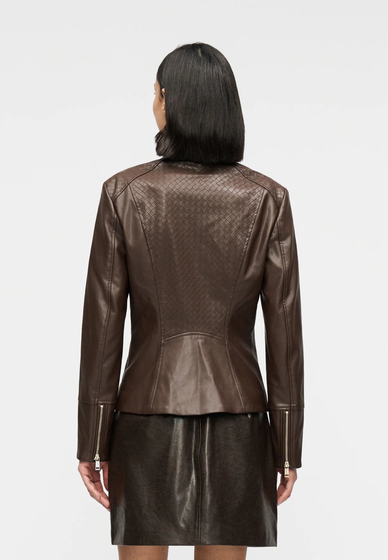 Discover the luxurious texture of the Guess Claudine Chocolate Biker Jacket. Made with 100% viscose and a lining of 95% polyester and 5% elastane, this jacket offers comfort and style. The surface is finished with polyurethane for a classic biker look. Machine washable for easy care.