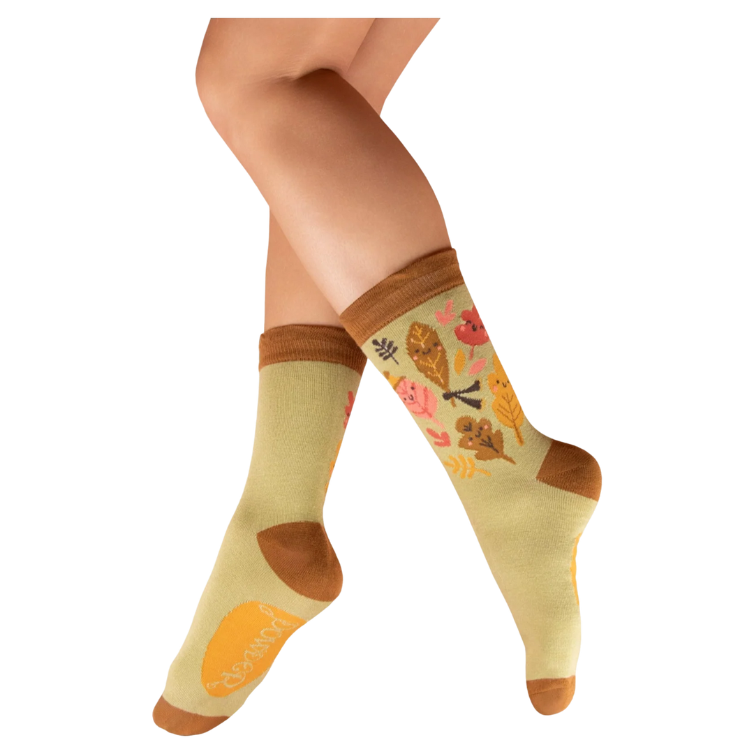 Powder Happy Acorn-Mustard Ankle Socks