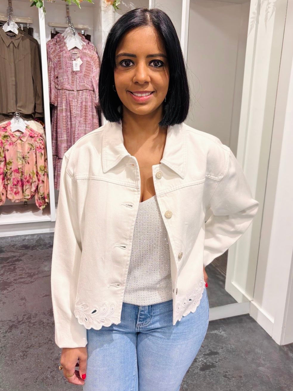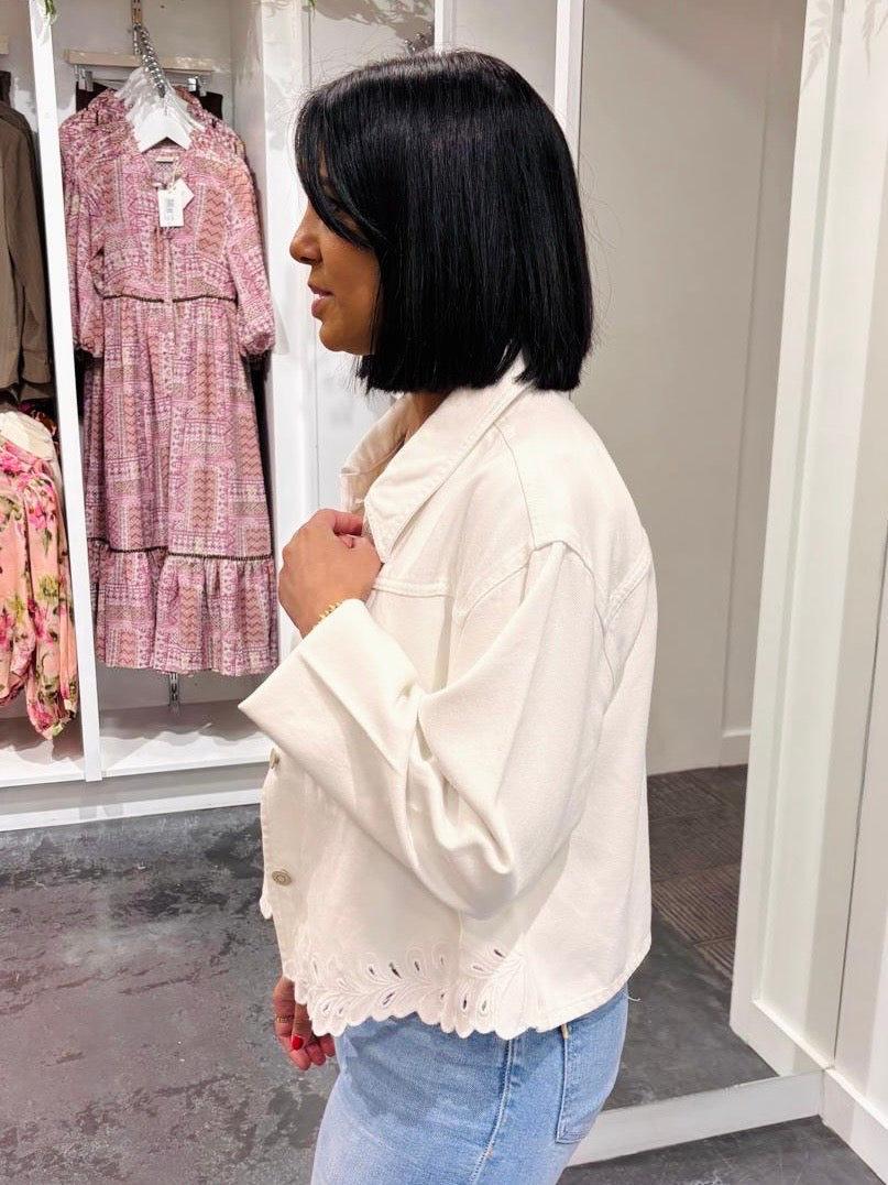Salsa White Denim Jacket With Hem Detailing