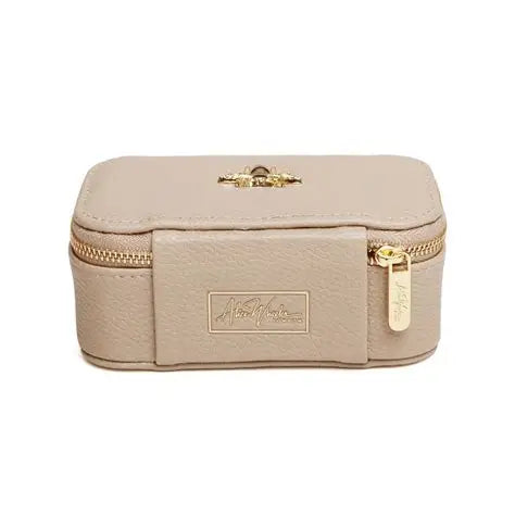 Introducing our exquisite Mini Jewellery Box, a chic and sophisticated accessory that adds a touch of elegance to your daily routine. This sleek and compact treasure chest is designed to safeguard your most cherished pieces while complementing your refined style. This lovely box embellished with honeybee insignia and Alice’s signature logo. The compact size of the box makes it an ideal companion for your travels, fitting effortlessly into your handbag or carry-on luggage. Perfect gift to give.
