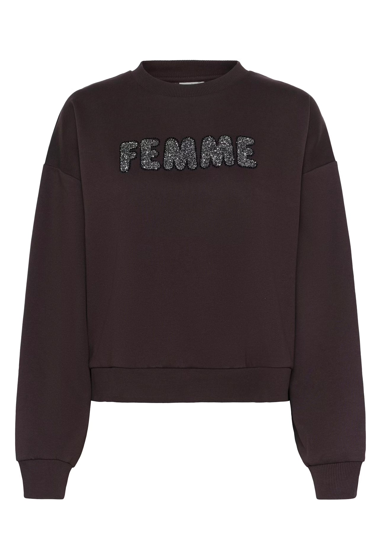 This oversized sweatshirt features a soft finish, bold block lettering in a sparkle detail running across the front